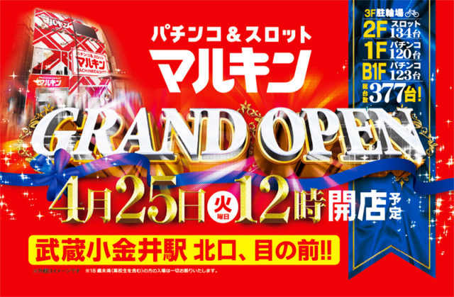 東京都小金井市のマルキン武蔵小金井店は4/25(火)12:00にグランドオープンします。