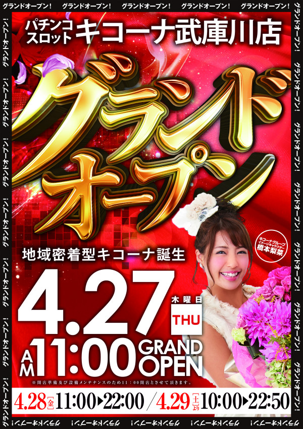 兵庫県尼崎市のキコーナ武庫川店は4/27(木)11:00にグランドオープンします。