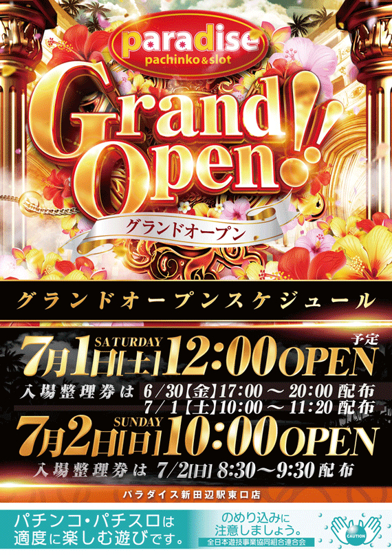 京都府京田辺市のパラダイス新田辺駅東口店は7/1(土)12:00にグランドオープン