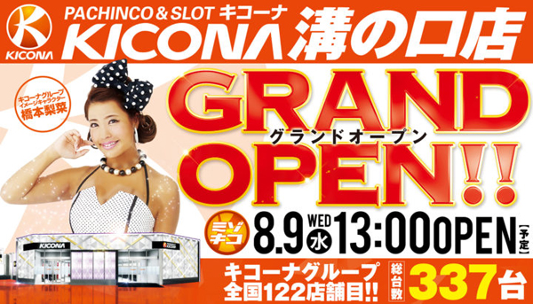 グランドオープン設置台数337台、キコーナグループ122店舗目のパチンコ店。