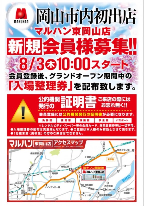岡山県岡山市中区のマルハン東岡山店は8/10(木)11:00にグランドオープンします