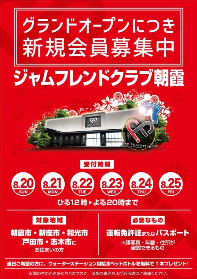 埼玉県朝霞市のジャムフレンドクラブ朝霞は8/26(土)12:00にグランドオープンします