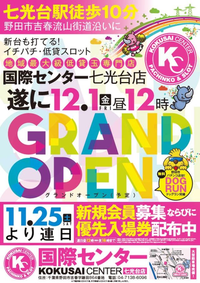 千葉県野田市の国際センター七光台店は12/1(金)12:00にグランドオープンします