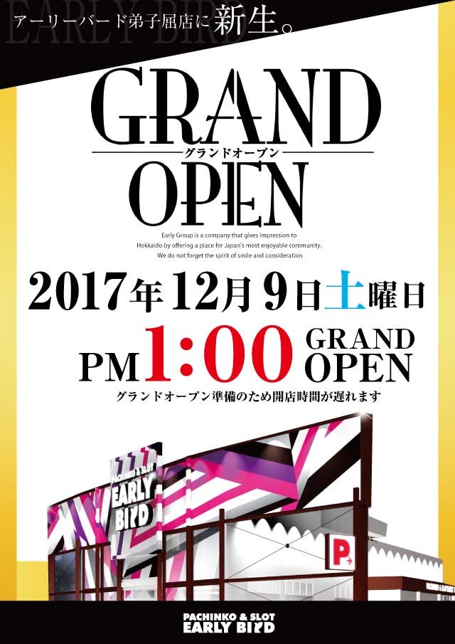 その跡地にグランドオープンするアーリーバード弟子屈店は株式会社アーリーグループによるもの。