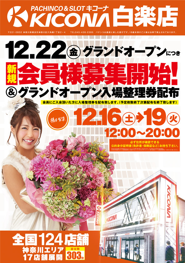 新規会員募集は12/16(土)から12/19(火)にかけて行われ、同時にグランドオープン入場整理券も同時に配布されます。