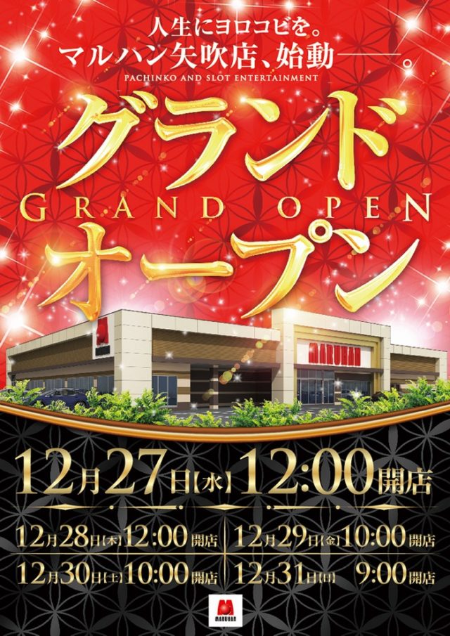 福島県西白河郡のマルハン矢吹店は12/27(水)12:00にグランドオープン
