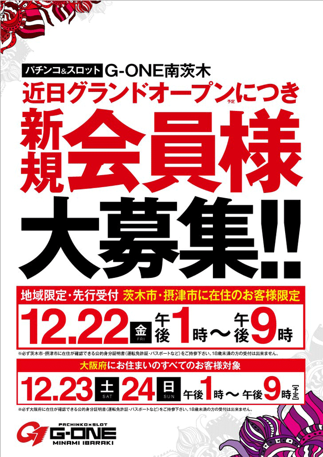 グランドオープン大阪府茨木市のジーワン南茨木店は12/26(火)13:00にグランドオープン