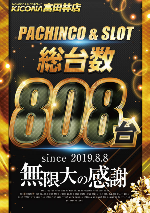 808台で8月8日グランドオープン、8に縁のあるパチンコ店。