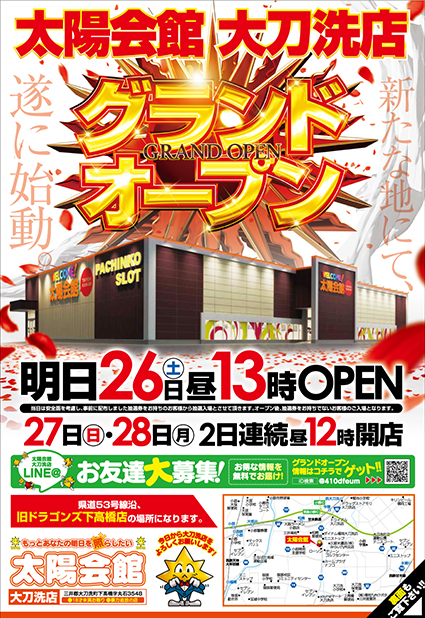 福岡県三井郡の太陽会館 大刀洗店は12/26(土)13:00にグランドオープン