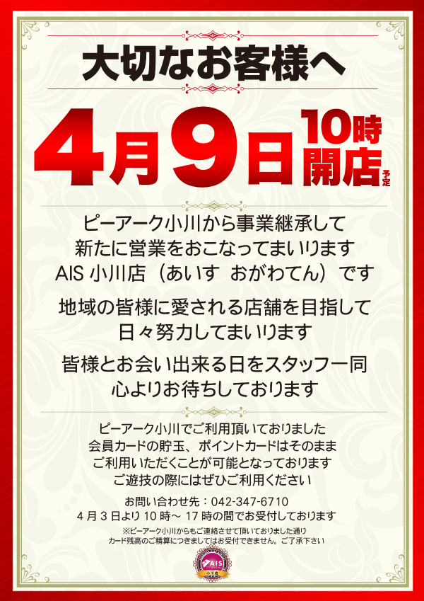 東京都小平市のAIS小川店は4/9(金)10:00にグランドオープン