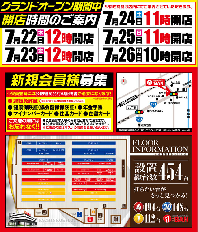 大阪府高槻市の1:BAN高槻店は7/22(木)12:00にグランドオープン!