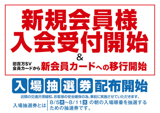 入場抽選券は会員に向けて発券されて、グランドオープンスケジュールの前半と後半に分けて2日分手に入れることができます。