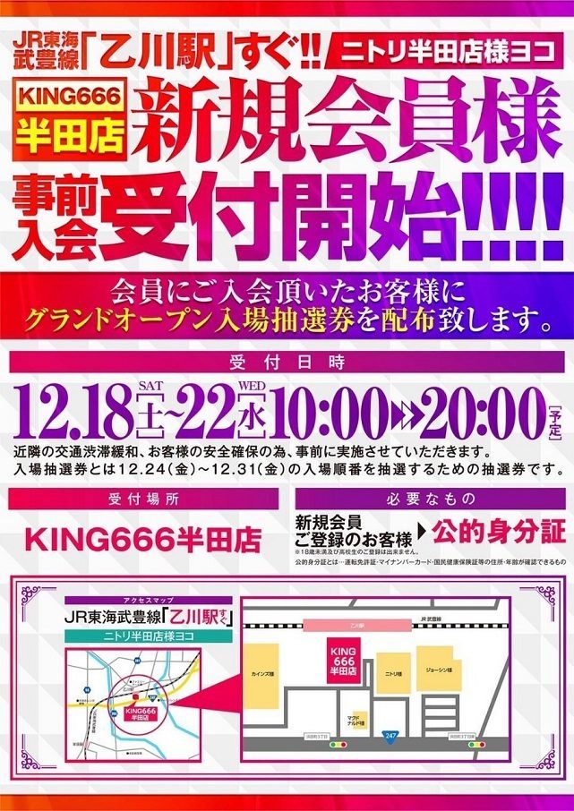 新規会員募集とグランドオープン入場抽選券の配布期間は12/18(土)から12/22(水)で連日10時から20時まで行われています。