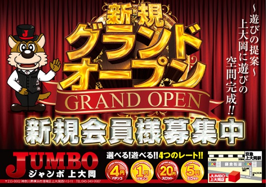 神奈川県横浜市港南区のジャンボ上大岡店は12/21(水)15:00にグランドオープンします。