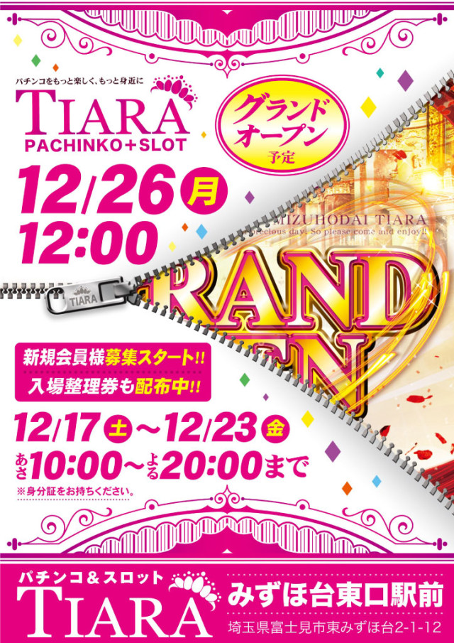 埼玉県富士見市のティアラみずほ台店は12/26(月)12:00にグランドオープンします。