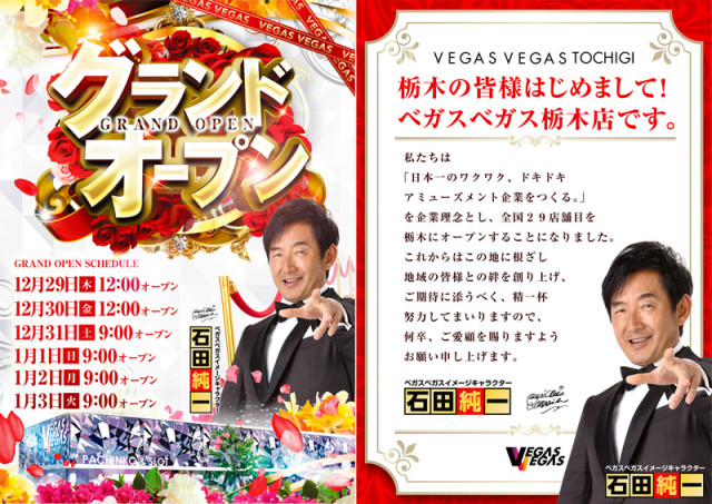 栃木県栃木市のベガスベガス栃木店は12/29(木)12:00にグランドオープンします。