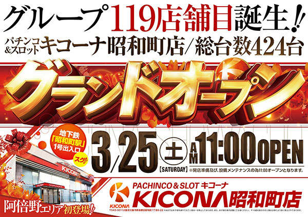大阪市阿倍野区のキコーナ昭和町店は3/25(土)11:00にグランドオープンします。