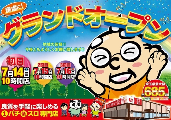 グランドオープン前の7/7(土)から7/11(水)までは無料パチンコを実施。