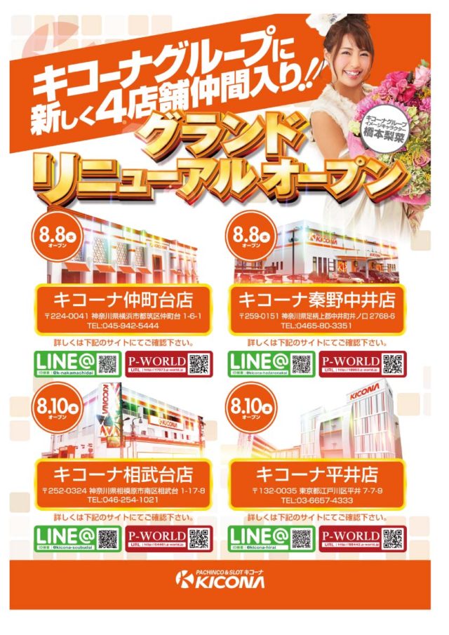 他の2店舗、パサージュ秦野中井店はキコーナ秦野中井店として8/8(水)に、パサージュ相武台店はキコーナ相武台店として8/10(金)にグランドオープンすることも公表されています。