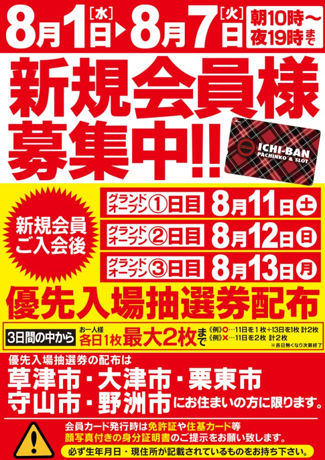 新規会員募集と優先入場整理券配布は8/1(水)から8/7(火)まで行われます。