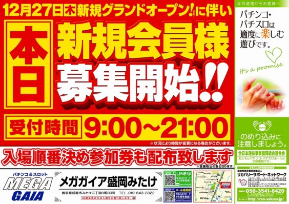 岩手県盛岡市のメガガイア盛岡みたけ店は12/27(木)11:00にグランドオープンします。