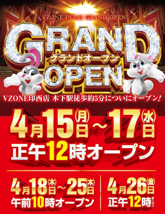 千葉県印西市のブイゾーン印西店は4/15(月)12:00にグランドオープンします。