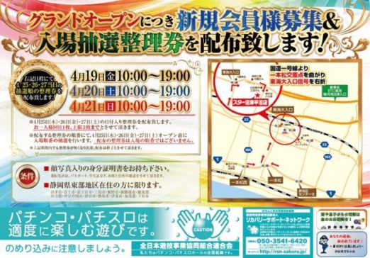新規会員募集と入場抽選整理券は4/19(金)から4/21(日)まで配布されます。