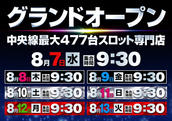 グランドオープンスケジュールは1週間分公開されていて、いずれも10時オープンだと思われます。